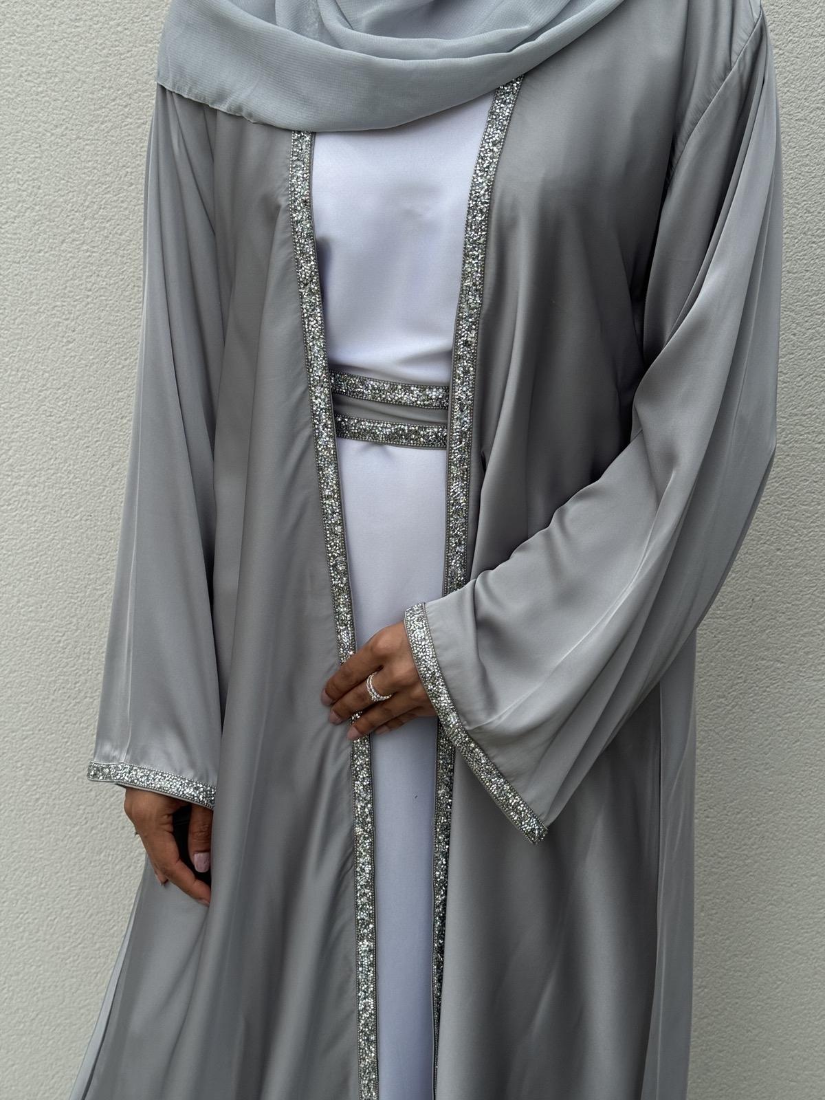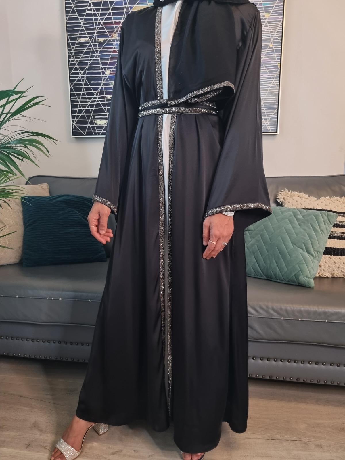 - Detailed Embellishments: Features exquisite embellishments on the abaya, sleeves, belt, and scarf, adding a touch of glamour to your look.